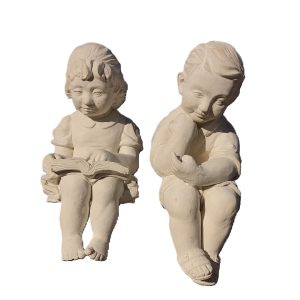 Jeannot and Jeannette can be seated on our stone bench or column base.